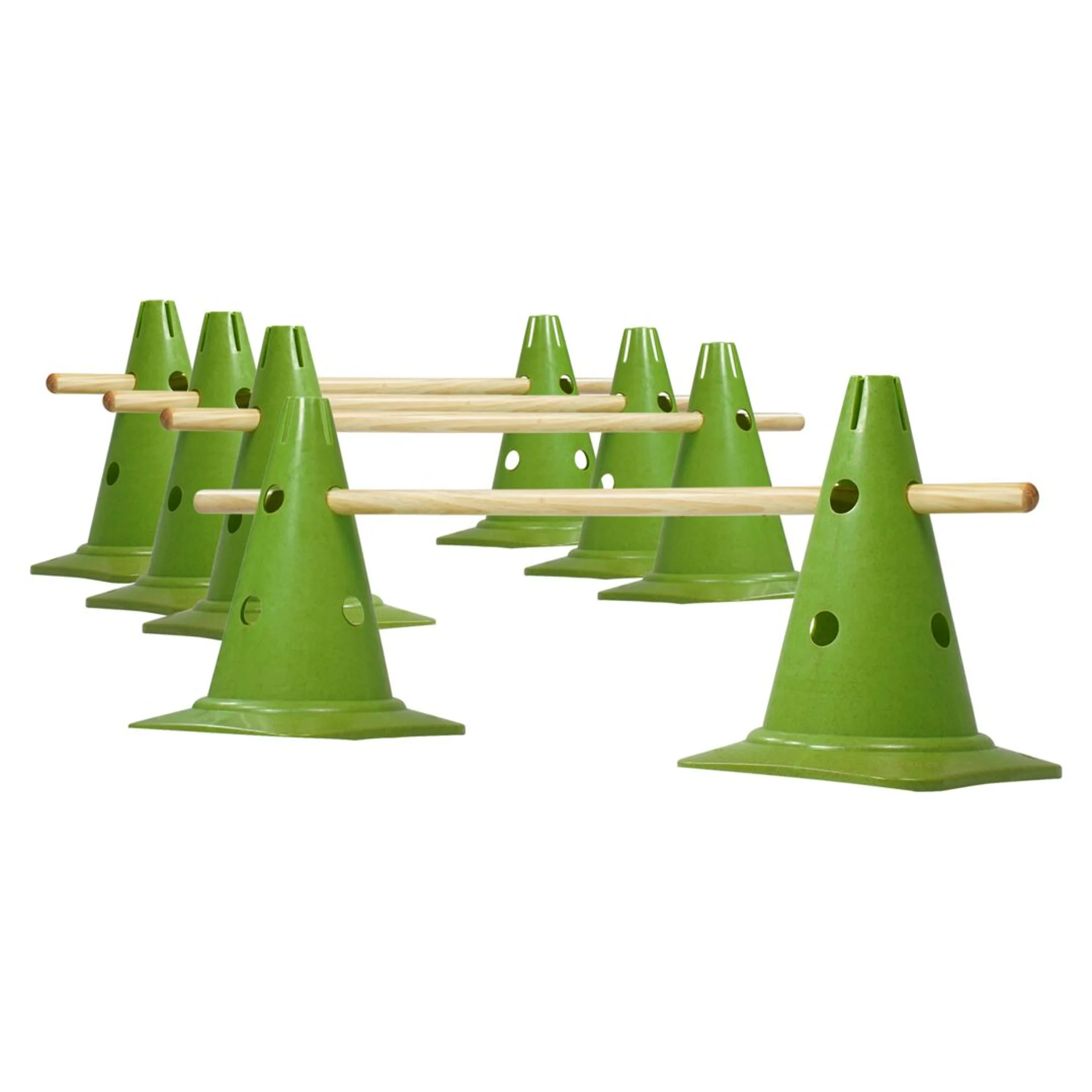 Biologisk nedbrydelige keglehække sæt med 4 stokke (stænger) fremstillet af vedvarende ressourcer i Tyskland.