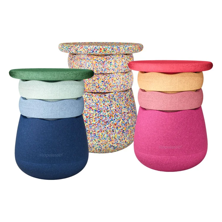 Stapelstein® Dynamisk skammel er et modulært skammelsæt designet til dynamisk sidden, bevægelse og koncentration.